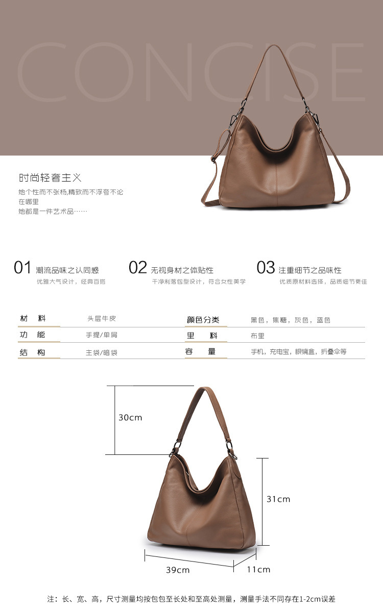 Ready to upgrade your everyday carry with a bag that understands real life? Add the Womens High-Capacity First-Layer Cowhide Shoulder Crossbody Bag to your collection and experience the blend of premium materials, smart organization, and classic style.