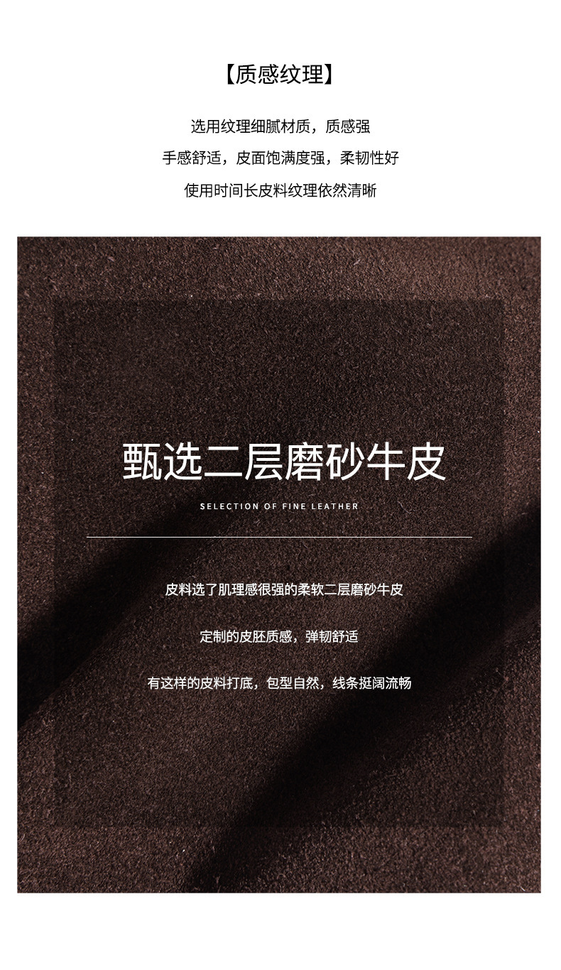 - Material: Outer - second-layer matte cowhide; Lining - cotton lining for a soft, breathable interior.